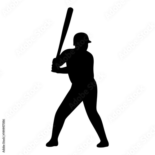baseball, player, batter, batting, stance, silhouette, sport, game, athlete, action, ready, hit, ball, black, white, field, team, uniform, equipment, helmet, swing, competition, exercise, fitness, health, leisure, recreation, activity, illustration, design, vector
