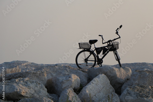 silhouette of a bicycle on the Sottomarina dyke, beach dam
