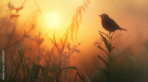 sunset, dawn, sun, nature, grass, no one, outdoors, silhouette, bird, blur, summer, leaf, fog, wild plant, sky, fall, wildlife, backlit, flower, light, evening, dusk, growth, landscape, blackbird, early, field, wheat, calmness, flower, warm colors, peaceful, environment