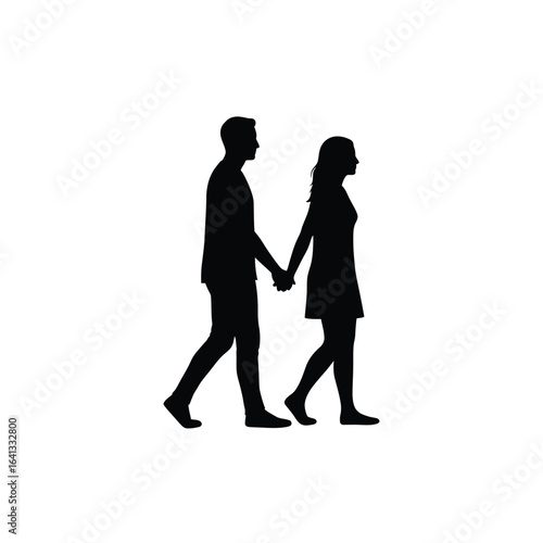 couple, man, woman, holding, hand, walking, together, silhouette, black, people, human relationships, love, romance, partnership, friendship, journey, movement, activity, casual attire, fashion, style, figure, outline, shape, graphic, design, art, simple, minimalist, clean, modern, abstract, symbol, concept, togetherness, oneness, connection, support, care, devotion, affection