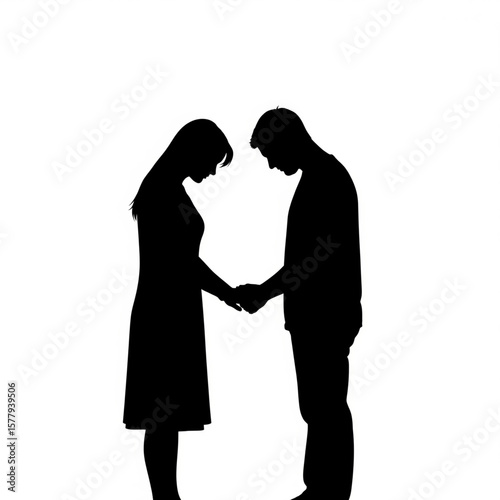 silhouette, couple, man, woman, holding hands, human relationships, love, romance, togetherness, support, hope, care, connection, trust, empathy, compassion, grief, sorrowful, marriage, oneness, black-and-white, simple, design element, vector, illustration, loss, concern, partner, emotional, tender, intimacy, despair
