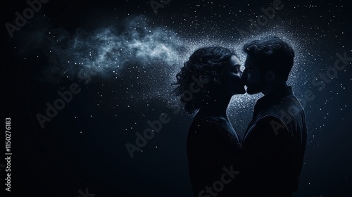 silhouette, couple, kissing, cosmic, starry, sky, romance, connection, love, intimacy, abstract, artistic, star, space, universe, bonding, together, dreamlike, celestial, oneness, inspiration, night, passion, beauty, harmony, calmness, mystery, serene, aethereal, peaceful, inspiring, tender, creative, infinite, deep, emotional