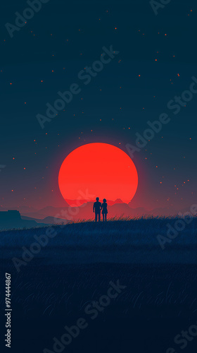 sunset, silhouette, couple, walking, sky, orange, red, hue, romance, love, nature, evening, light, dramatic, scenic, photograph, horizon, beautiful, calm, warmth, together, colours, landscape, scenery, romantic, dusk, calmness, mood, vibrant, bliss, peaceful, natural light, visual, soft light, captivating, dreamy, enchanting, blissful