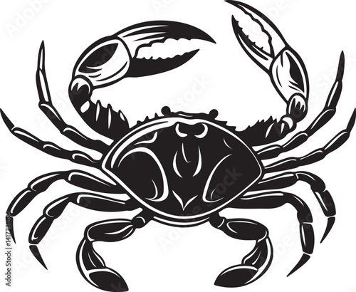 Silhouette of a crab in black and white against a white background, featured in a vector art illustration collection
