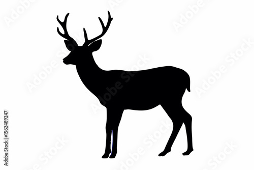 cervid, silhouette, antler, animal, wildlife, mammal, nature, buck, stag, forest, standing, isolated, white background, illustration, drawing, graphic, design, art, clip art, outline, black, shape, icon, symbol, wild, fauna, cervidae, ungulate, herbivore, wild animal