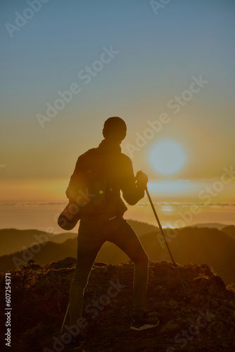 Silhouette of a hiker on a mountain