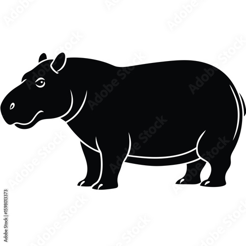 Silhouette of a Hippo: A bold, clean silhouette of a hippopotamus, showcasing the animal's distinctive form in a simple, yet striking, visual representation.