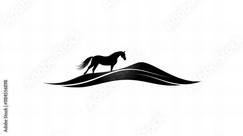 Silhouette of a horse standing on a hill, a minimalist design against a white background.