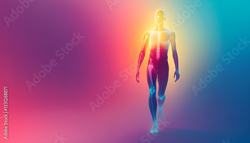 silhouette of a human with highlighted body part, glowing effect, contrast background