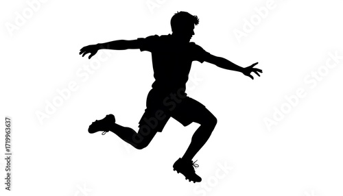 silhouette, jumping, player, soccer, running, action, sport, black, white, athlete, dynamic, movement, foot, leg, arm, body, shape, form, sharpened, motion, energy, effort, speed, agility, skill, training, exercise, game, play, jump, kick, goal