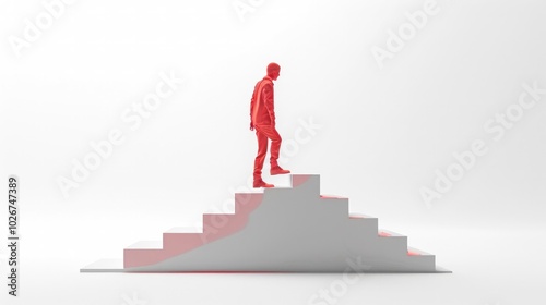man, person, figure, silhouette, red, suit, standing, step, stair, architectural, staircase, graphic, minimalist, modern, abstract, concept, achievement, success, growth, leadership, ambition, challenge, climb, career, goal, ascend, elevation, progress, opportunity, motivation
