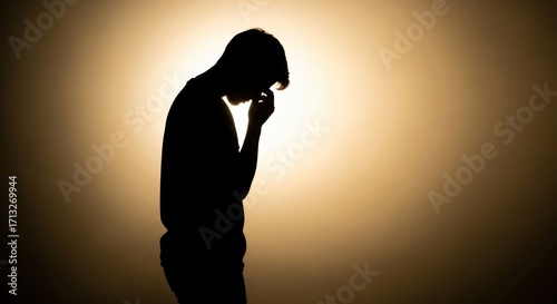 silhouette, man, sorrowful, despair, emotion, grief, grieved, loneliness, depression, stress, anxiety, hopelessness, desperation, vulnerability, isolation, worry, fear, frustration, contemplation, introspection, thinking, alone, darkness, shadow, light, backlit, male, person, human, 1, adult, upset, concerned, thoughtful, reflective, pensive, mournful, sombre, moody, dramatic, poignant