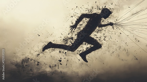 silhouette, exploding, breaking, smoky, running, man, hazy, wire, glowing, fragment, motion, surreal, dramatic, abstract, figure, shadow, impact, destruction, energy, force, artistic, background, tension, movement, dynamic, mystery, light, texture