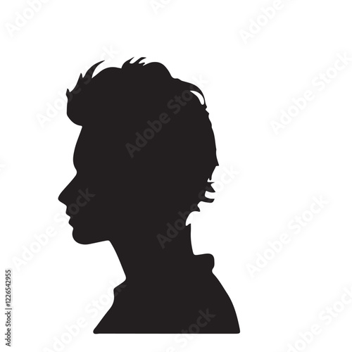 silhouette, head, face, profile, woman, black, people, vector, abstract, illustration, boy, person, icon, art, symbol, hair, brain, beauty, human, model, lady, outline