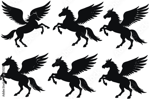 silhouette, horse, vector, animal, bird, illustration, tattoo, pegasus, symbol, eagle, black, wing, dragon, flying, art, fantasy, unicorn, design, wing, signs, mythology, myth, fly, halloween, nature