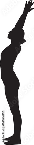 silhouette, person, stretching, black, white, background, pose, exercise, yoga, fitness, shadow, outline, standing, upright, minimalist, monochrome, activity, motion, form, shape, posture, athletic, calm, serene, focused, simple, clean, abstract, figure, human, raising, against, also, transparent, raised, up high, their, head