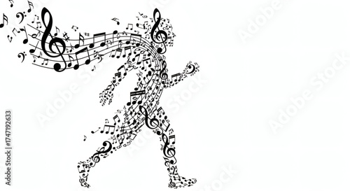 music, note, treble, bass, symbol, running, person, silhouette, art, design, illustration, graphic, melody, harmony, rythm, sound, musical, composition, creative, concept, abstract, shape, figure, motion, dynamic, movement, style