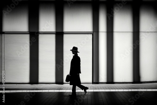 silhouette, person, walking, work, business, career, employment, urban, city, lifestyle, commuting, morning, routine, exercise, healthy, active, energetic, determined, confident, professional, minimalistic, generative, ai, businessman, wall, concept