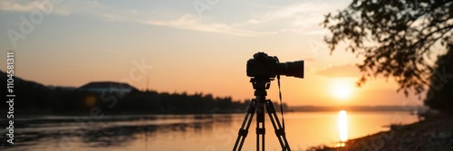 tripod, camera, golden hour