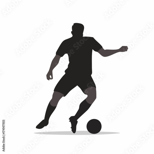 Silhouette of a soccer player in action, kicking a ball with intensity on a plain background
