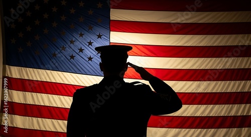 Silhouette of a soldier saluting the american flag, symbolizing patriotism
