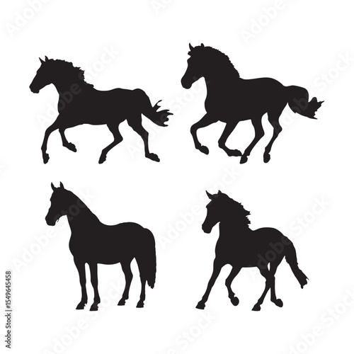 Silhouette of a standing horse in black set vector illustrations isolated on a white background