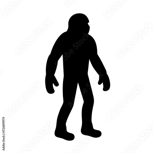 silhouette, walking, creature, ape, mystery, legend, folklore, android, unknown, monster, mythical, black, shadow, hairy, primate, stocky, standing, outdoors, wood, forest, nature, supernatural, paranormal