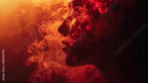 silhouette, woman, red, orange, smoke, dramatic, mysterious, artistic, visual, effect, shadow, female, person, abstract, portrait, creative, design