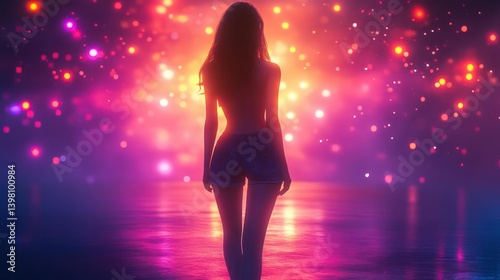 woman, silhouette, walking, light, colourful, vibrant, glowing, night, beach, sunset, ocean, sparkle, fireworks, summer, fashion, model, digital, art, illustration, fantasy, imagination, future, style, beauty, body, design, pink, purple, orange, red, blue, neon, sparkling, abstract, modern, contemporary, aesthetic, background, texture, digital artwork, trendy, summer, vacation, travel, relaxation, adventure, photo