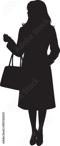 silhouette, woman, female, walking, bag, pursed, purse, shopping, lifestyle, human, people, motion, movement, posture, pose, casual attire, everyday, fashion, style, urban, city, commute, travel, modern, minimal, outline, shadow, monochrome, black, white, icon, symbol, illustration, vector, clean, isolated, elegant, trendy, activity, concept