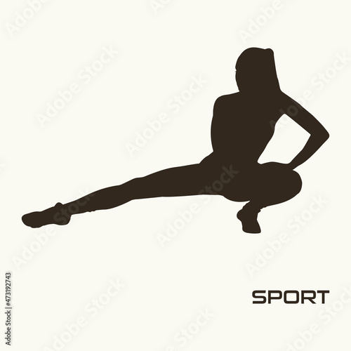 Silhouette of a young sportive woman. Stretching exercises. Gymnasts. Sportives. Fitness club.