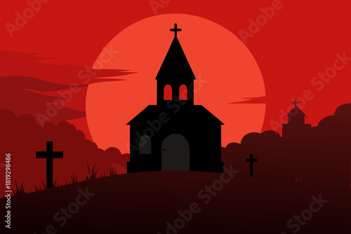 Silhouette of an abandoned church with a bell tower against the sky vector illustration