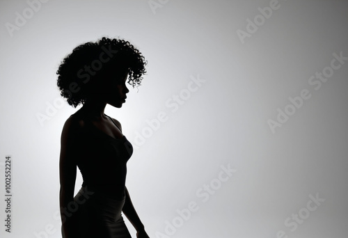 Silhouette of an African American woman with a short hairstyle with curly hair, on a light background