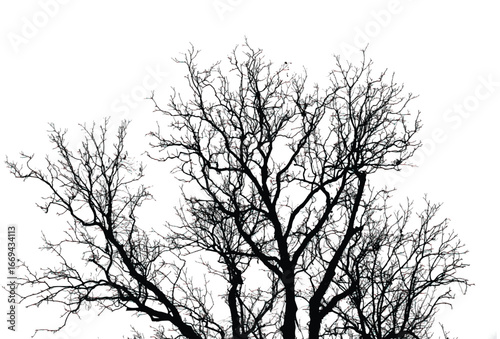 Silhouette of bare trees with branches isolated on white. Black and white vector illustration