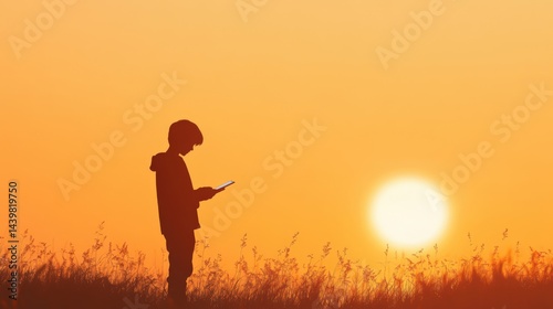 silhouette, children, sunset, sun, phone, smartphone, field, grass, nature, evening, boy, technology, communication, outdoors, digital, screen, device, mobile, connection, young, person, leisure, relax, alone, gold, hours, peaceful, youth, rural, landscape, calm, lifestyle