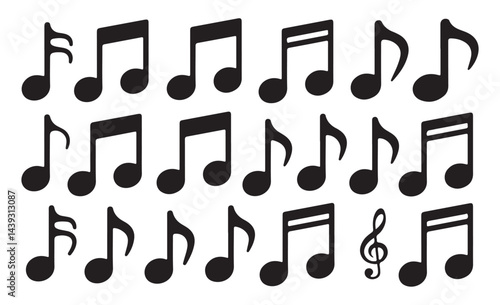 Silhouette of diverse musical notes forming a creative and appealing composition.