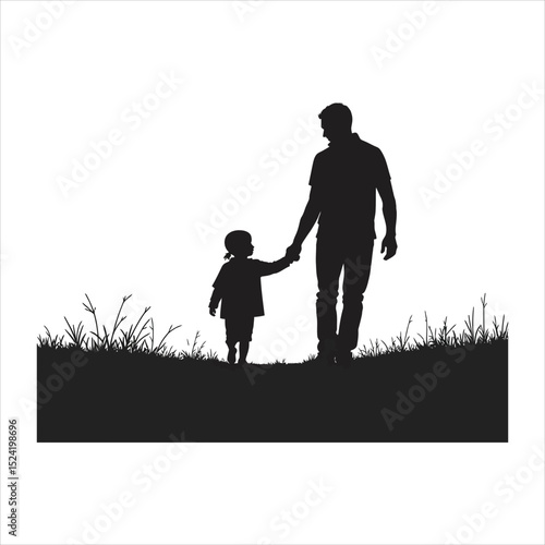 father, daughter, eltern, children, family, love, together, silhouette, walking, holding hands, grass, field, outdoors, nature, black-and-white, monochrome, human relationships, togetherness, guidance, care, happy, childhood, trust, simple, vector, illustration, clip art, graphic, design, isolated, bond, support, couple, woman, people, tree, boy, walk, children, mother, black, park, happiness, mother, sunset, sun