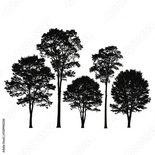 silhouette, tree, white, nature, forest, foliage, branch, black, tall, growth, landscape, flora, tree trunk, 5, against, art, design, digital, modern