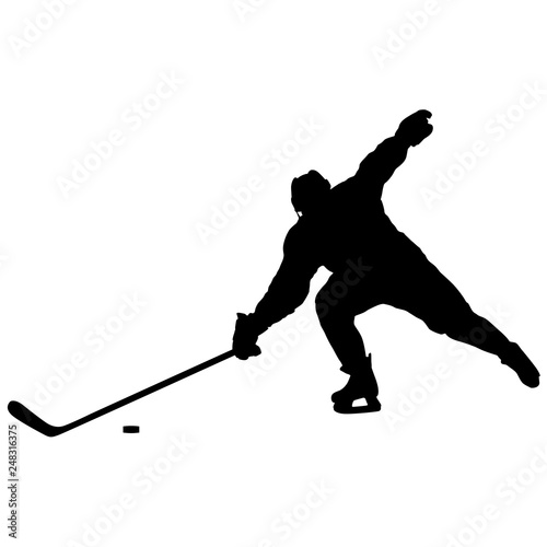 Silhouette of hockey player. Isolated on white