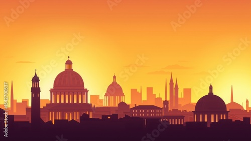 silhouette, landmark, europa, skyline, sunset, city landscape, architecture, travel, tour tourism, historical, dusk, horizon, design, graphic, illustration, culture, evening, view, famous, beauty, scene, background, orange, sky, building, tower, dome, church steeple, art, aesthetic, peaceful, vibrant, unique, scenic, modern, classic, nature, visual, urban, environment, panoramic, iconic, heritage