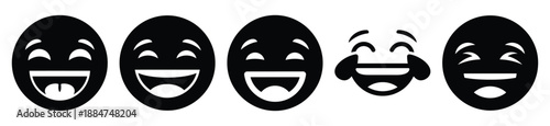 Silhouette of laughing emoji face vector icon set. Funny silhouette design vector stock illustration