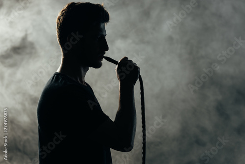 relaxation, man, silhouette, smoke, relax, aromatic, traditional, lifestyle, darkness, tube, culture, aroma, east, smoking, tobacco, pipe, exotic, oriental, turkish, arabic, arabian, mouthpiece, hookah, hookah, copy space, one person, studio shot, young adult