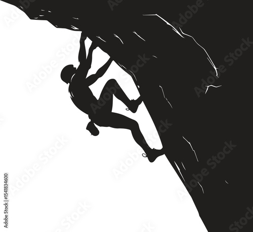Silhouette of Mountain Climber. Adventure, risk, outdoors, hike, challenge. Vector illustration on white background