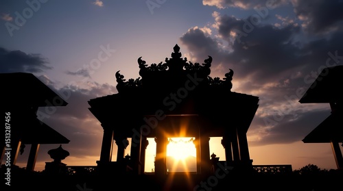 silhouette, temple, gateway, sunset, sun, ornate, architecture, asian, dusk, dark, light, structure, entrance, detail, religious, buddhist, pagoda, exterior, sky, cloud, dramatic, gold, ray, sunbeam, building, ancient, historical, tradition, cultural, heritage, travel, holiday maker, landmark, historical building, photo, image, twilight, shadow