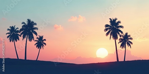 Silhouette of Palm Trees at Sunset on a Tropical Island Beach