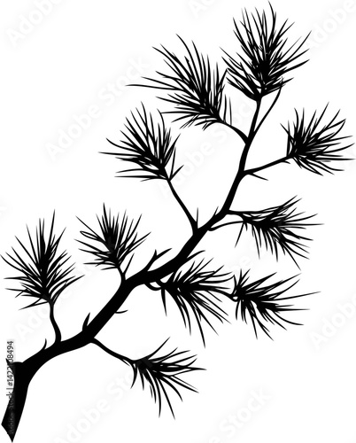 Silhouette of pine branch with needles, elegant nature art. Vector illustration