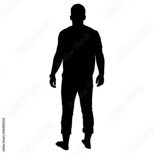 man, silhouette, standing, barefoot beach, male, adult, shadow, black, outline, pose, isolated, full body, person, casual attire, jean, t-shirt, half face, anonymous, alone, dark, profile, simple, graphic, human, shape, monochrome, figure, casual clothes, blank, white background, mystery, male model, position, neutral, minimal, body language, vector, illustration, walking