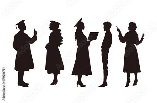 Silhouette of students celebrating their Graduation of a book isolated on white background.PNG