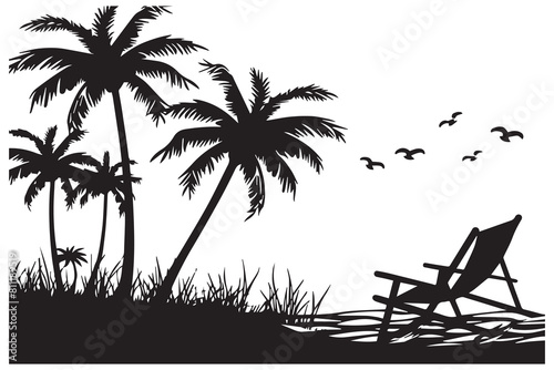 silhouette, island, vector, beach, landscape, summer, palm, illustration, sun, palm tree, graphic, sunset, design, tree, white, black, icon, sky, background, outline, set, tropical, nature, sea, travel, ocean, water, vacation, paradise, plant, sand, tree
