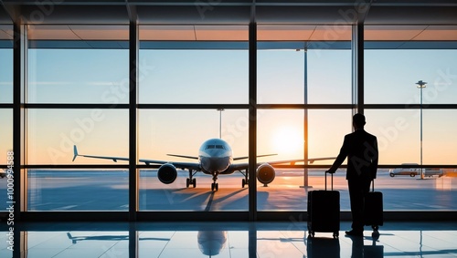 silhouette, traveler, aerodrome, aeroplane, sunset, terminal, flight, modern, gaze, warm, sky, horizon, people, cloud, evening, scene, travel, landscape, background, waiting, view, journey, transportation, freedom, nature, adventure, excitement, perspective, design, architecture, relaxation, calmness, scenic, exploration, wanderlust, air travel, emotional, beautiful, colours, moment, twilight, light, leisure, earth, vacation, happiness, escape